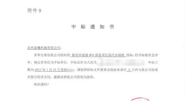 富曦機(jī)械生產(chǎn)制造的MVR羅茨蒸汽壓縮機(jī)中標(biāo)中鋁國際工程股份有限公司項(xiàng)目